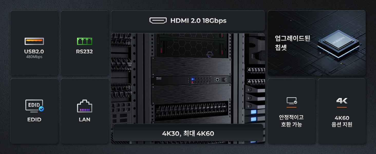 안정적이고 호환성 뛰어남, HKS1601-L23에서 업그레이드되어 향상된 4K30 및 USB2.0 지원, 4K60 옵션 가능