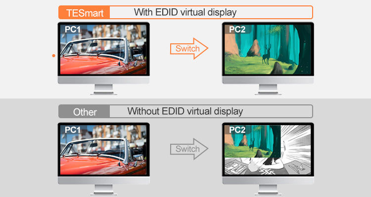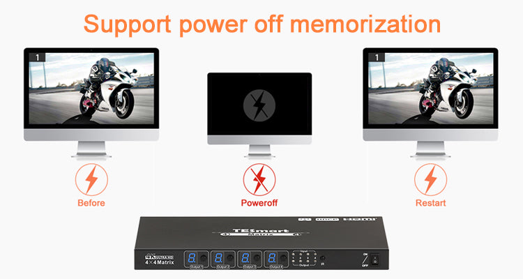 HDMI 매트릭스는 오디오 및 비디오 장치의 관리를 크게 용이하게 할 수 있습니다. 게임 콘솔, 스트리밍 박스, 프로젝터 및 모니터와 같은 여러 소스 및 디스플레이 장치가 있는 경우 TESmart의 HDMI 매트릭스는 장치를 원하는 대로 일치시킬 수 있도록 도와줍니다. 원하는 입력 장치를 표시할 출력 장치를 선택할 수 있으며 한 개의 입력 장치를 여러 출력 장치에 동시에 표시할 수도 있어 케이블을 뽑고 장치를 전환해야 하는 번거로움을 없애고 장치 관리를 크게 단순화할 수 있습니다. 전면 패널 버튼, IR 리모컨 및 RS232 포트로 입력 포트를 전환할 수 있습니다.