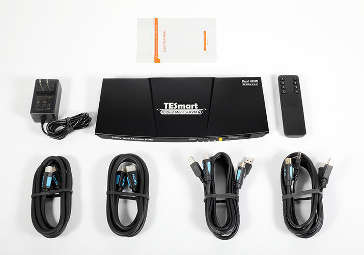 TESmart의 KVM 스위치로 HDMI 장치의 잠재력을 최대한 경험하십시오. 고성능 HDMI 포트를 통해 각 PC를 두 개의 디스플레이에 쉽게 연결할 수 있습니다. 장치 간의 원활한 전환을 즐기고 생산성을 간소화하십시오. 각 PC는 듀얼 모니터용 KVM에 2개의 비디오 포트를 연결해야 합니다.