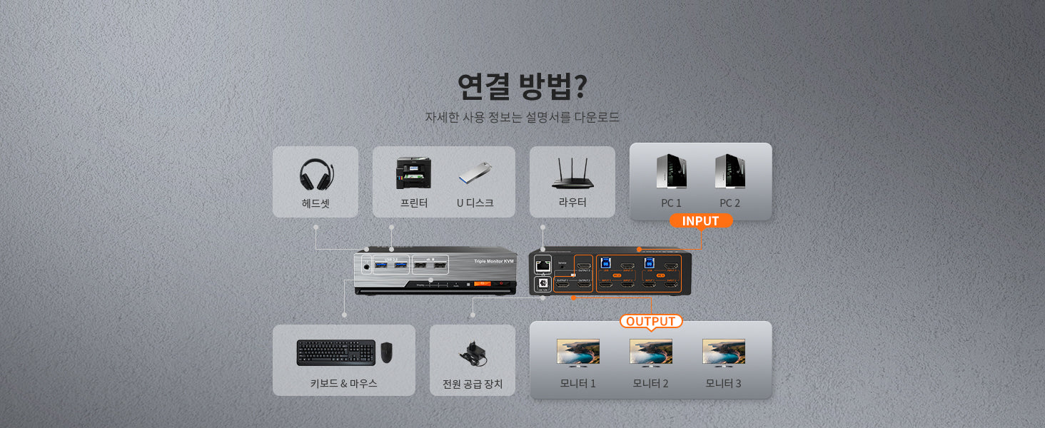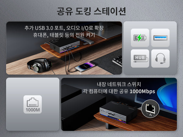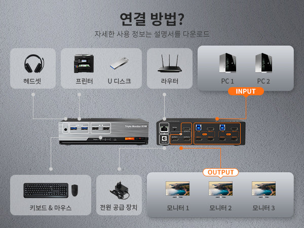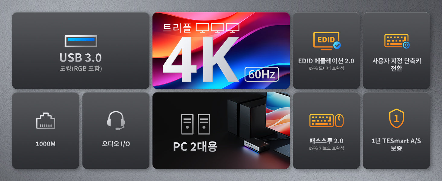 트리플 4K@60Hz KVM 스위치 게이밍 독